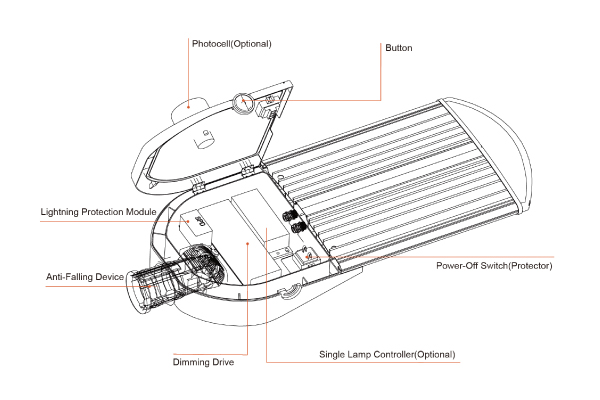 DESCRIPTION Medy LED street light is a LED street light with simple and smooth appearance and compact structure designed for green lighting, energy conservation, environmental protection and decorating urban landscape, suitable for roadway lighting in cities, villages, industrial parks, etc.